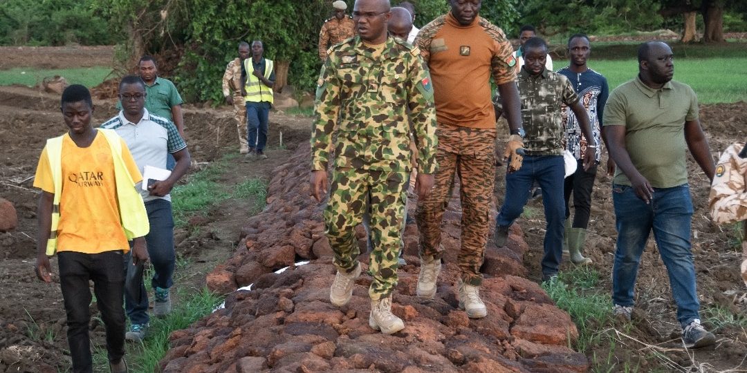 Le ministre dโรtat, ministre de lโAgriculture, des Ressources animales et halieutiques, le Commandant Ismaรซl SOMBIE, a effectuรฉ une visite de terrain des travaux dโamรฉnagement de bas-fonds dans les provinces du Boulkiemdรฉ et du Tuy, respectivement dans les rรฉgions du Centre-Ouest et des Hauts-Bassins, ce samedi 7 juin 2025.