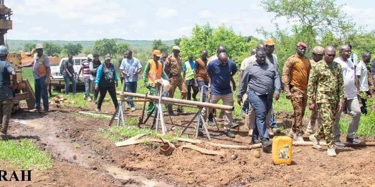 Le Ministre dโรtat, Ministre de lโAgriculture, des Ressources animales et halieutiques, le Commandant Ismaรซl SOMBIร, a effectuรฉ ce lundi 9 juin 2025, une visite de terrain sur plusieurs sites dโamรฉnagement de bas-fonds et de construction de barrage dans la province du Houet, rรฉgion des Hauts-Bassins.