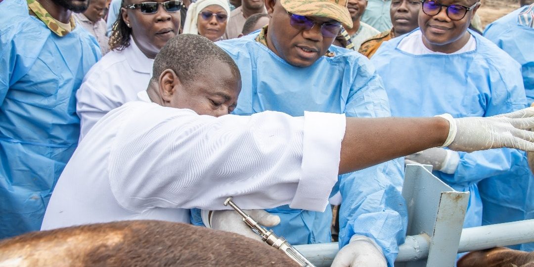Le ministre dโรtat, ministre de lโAgriculture, des Ressources animales et halieutiques, le Commandant Ismaรซl SOMBIE, a procรฉdรฉ au lancement officiel des campagnes nationales dโinsรฉmination artificielle animale et de vaccination du cheptel contre la fiรจvre aphteuse, ce mardi 24 juin 2025, dans le village de Bendatoega, commune rurale de Pabrรฉ. La cรฉrรฉmonie sโest dรฉroulรฉe en prรฉsence du ministre de la Santรฉ, Dr Robert Lucien Jean-Claude KARGOUGOU, et du gouverneur de la rรฉgion du Centre, monsieur Abdoulaye BASSINGA.