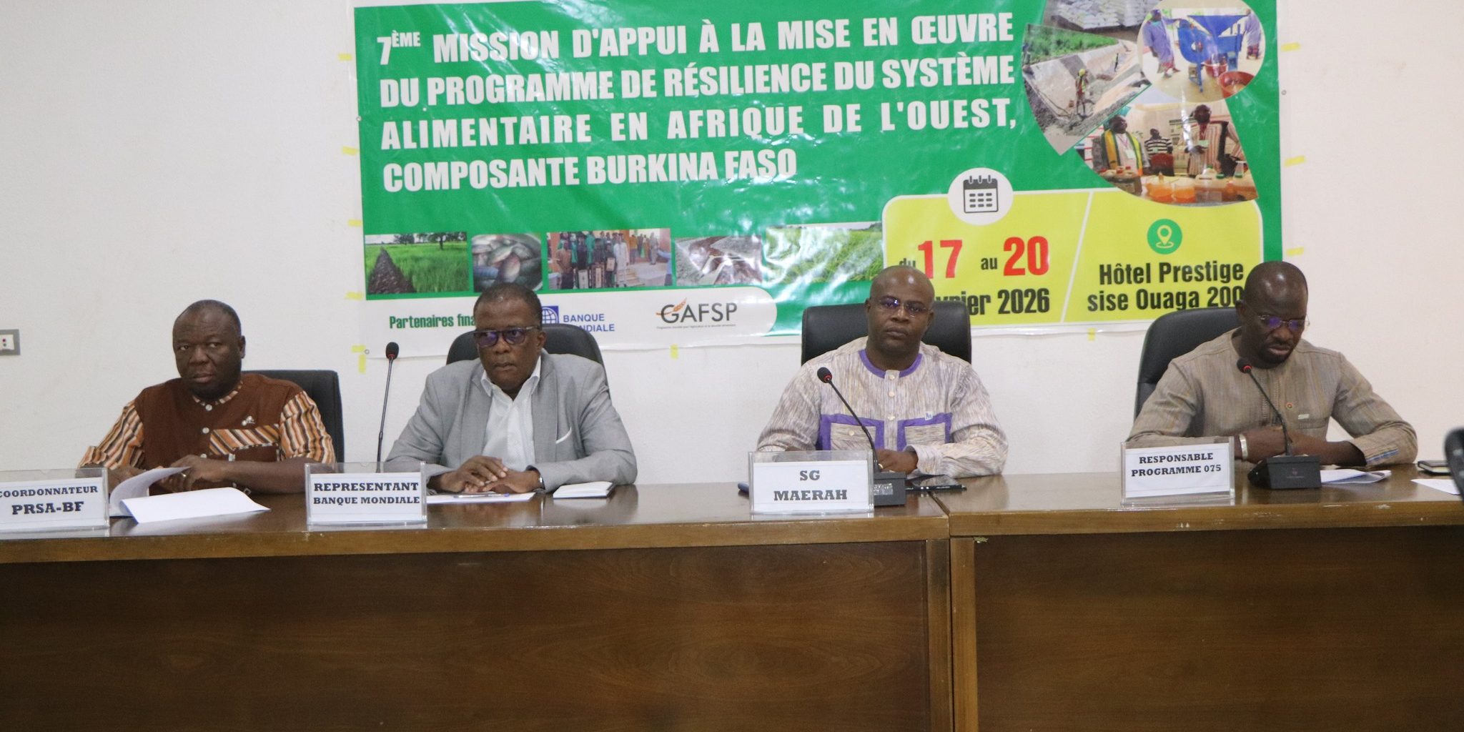 Le Secrรฉtaire gรฉnรฉral du ministรจre de lโAgriculture, de lโEau et des Ressources animales et halieutiques, monsieur Gaoussou SANOU, a prรฉsidรฉ la cรฉrรฉmonie dโouverture de la 7แต mission dโappui conjointe Gouvernement- Banque mondiale ร la mise en ลuvre du Programme de rรฉsilience du systรจme alimentaire en Afrique de lโOuest, composante Burkina Faso (PRSA-BF), ce mardi 17 fรฉvrier 2026 ร Ouagadougou.
